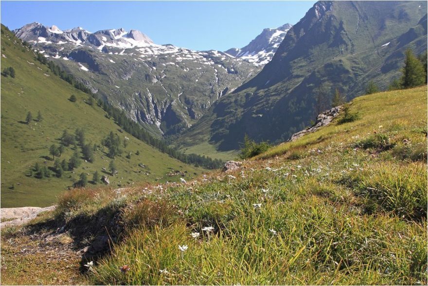 De Edelweiβwiese ligt hoog boven Matrei en biedt vooral in juli een fantastisch bloeiende alpine flora.